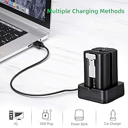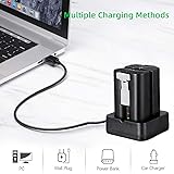 2-Pack 6040mAh Replacement Battery with Charger Station for Ring-Doorbell Camera 2/3/3 Plus/4/Pro, Spotlight and Stick Up Cam, Rechargeable Upgraded Lithium Li-ion Batteries 3.65V with USB-C Cable 【MULTIPLE CHARGING OPTIONS】 The battery can be charged with any 5V USB C ports like PC, car charger or power bank etc. 【POWERFUL BATTERY CAPACITY】 Premium cells create quality batteries. 6040mAh high battery capacity for continuous surveillance. 【Dual Charging】 This Ring rechargeable battery charger station can charge up to 2 ring batteries simultaneously, allowing you to change the batteries of your ring cameras via hot-swap and thereby reducing the downtime of your Ring camera. Compatible with Spotlight Cam Battery, Spotlight Cam Solar, Video Doorbell 2 and ALL-new Ring Stick Up Cam Battery 【LED Instructions】With simple signal indicators, it is easy to diagnose the charging status through the changing of red and green indicators. When red and green lights are on, the battery is starting charging. When the 2 lights both green, the battery is fully charged. What you will get in the package box : 2Pack 6040mAh Replacement Battery for Ring; 1Pack USB C Charging Dock ; 1pcs USB C charging cable.