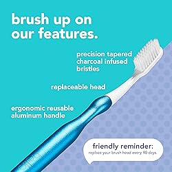 - Say hello to the Future of brushing. 85% less plastic, 100% more thoughtful. This brush features replaceable brush heads with precision tapered, soft bristles and an ergonomic reble aluminum handle. Its organic form is inspired by nature to offer maximum beauty and true brushing happiness. As compared to our standard manual toothbrush. Your mouth and the planet say thank you.