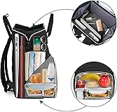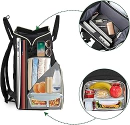 Insulated & Leakproof Cooler Funtion: Size: 15 x 10.5 x 7 inch. Matein college laptop backpack 15.6 inch keeps the food warm or cold drinks for about 2-4 hours. High quality insulation layer of lunch box compartment keeps food fresh and warm in this college backapck, which makes it easy to clean and store food. Travel laptop backpack with cooler compartment is suitable for college, beach, camping, office, picnic, trip, outdoor & indoor Convenient USB Port: USB charging part of this college laptop backpack makes it easy to charge your phone while you're walking outside,convenient and practical. NOTE: Not inclube power bank. Both side pockets of this college lunch bag to hold umbrellas and water bottles, mens lunch box bag's waterproof fabric protects work supplies in this laptop bag from getting wet. Lunch backpack, best gift as a college backpack for friends Roomy Capacity & Organized Pockets: Main spacious packing compartment of this laptop work backpack roomy for tech electronics accessories, daily necessities, magazines, make your items organized and easier to find. High-quality gold zippers of this college backpack ensure smooth use, sturdiness, extended the use of lunch bags. Laptop backpack lunch bag provides independent space for your laptop, mobile phone, lunch box, clothes, water bottle, umbrella, keys, wallet Tote Design & Laptop Compartment: Beach travel backpack lunch bag with separate laptop compartment hold 15.6 Inch laptop. The design of double zipples full opening of this work lunch backpack is convenient to store items, which inside are clear at a glance, hidden pocket help secure wallet and phone while you are walking outside around, best gifts for women, men, wife, husband, ladies on Mother's Day Comfortable & Sturdy Material: Travel laptop backpack with lunch box compartment, Adjustable shoulders strap design with high quality and breathing strong fabrics, offering the maximum comfort and support. Business work laptop backpack cooler leakproof suitable for college, men, women, nurse, business, adults. For your friends, as a college friends gifts, a must have some office supplies, phones, keys, purse, glasses and other small daily items