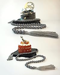 Wooden Beads Garland with Tassels, 61 Inch Grey Wood Bead Garland, Modern Farmhouse Decor, Boho Home Decor Clearance