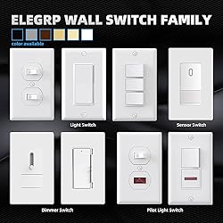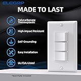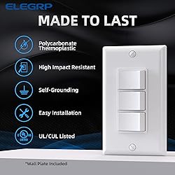 - ELEGRP Decorator Triple Rocker Light Switch, Three Single Pole Electrical Paddle Switch, 15A 120V, in-Wall On/Off Switch, Self-grounding, Wall Plate is Included, UL Listed (1 Pack, Glossy White)