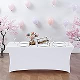 CWK 6FT Waterproof Stretch Spandex Table Cover for Rectangular Tables - Elastic Fitted Tablecloth for Folding Tables,Wrinkle Resistant Table Cloth for Parties, Weddings, Banquets & Events (White)