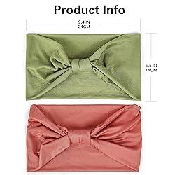 GiLi 2 Pack Wide Headbands for Women Boho African Knotted Non Slip Fashion Hair Bands Yoga Running Sports Workout Gym Head Wraps Elastic Soft Cotton Cloth Turbans Bandana for Girls(Green, Pink)