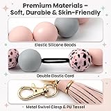 Made Of High Quality:Elastic silicone material and PU leather Tassel, the beads are big,soft,sturdy and comfortable.it is lightweight. It will be suitable for long time wear. Elastic Closure: this beaded keychain bracelet is lightweight, bracelet is composed of 16 silicone beads,and 1 PU leather tassel with a metal swivel clasp hook(easy to open and close). The silicone bead is smooth and elastic, and all the beads are threaded together with a double-stranded line. Comfortable to wear and Waterproof silicone beads:The smooth surface of the beads rolls smoothly on your wrist. This silicone beaded bracelet keychain tassel is not fall off as other wristlet band as picture show.Note only silicone beads is waterproof, not other parts. Wear together or separately: keychain bracelet can be wear together whenever, or you can take off the metal key and tassel, then wear silicone beaded bracelet on your wrist , the leather tassel can be used to decorate bags or pendants. Wrist Ring : Our round keychain bangle is stretchy, slides easily on and off your hand, soft, and comfortable. Not to mention our key ring silicone bracelet is washable!