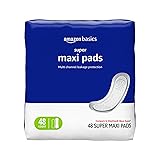 Amazon Basics Maxi Pads For Periods- Thick, Super Absorbency, Unscented, 48 Count, 1 Pack