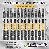 Amartisan 24-piece Screwdriver Bit Set | Magnetic Slotted Phillips driver bit set | S2 Steel, long 1" and 2.3" Head Drill Bits Set