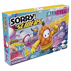 TWIST ON CLASSIC SORRY! GAMEPLAY: In the Sorry! Sliders Fall Guys Ultimate Knockout board game for families and kids ages 8+, opponents take aim and slide their pawns through Fall Guys obstacle courses 4 COMPETITIVE GAME MODES: Rearrange the boards and unit sections to create 4 different ways to play. Compete in Dizzy Heights, Slime Climb, Whirlygig and Hex-a-Gone SLIDE ROLLER PAWNS DOWN THE TRACK: Each player gets 4 Fall Guys pawns with gliding rollers. Bump opponents out of the way to score, but try not to get knocked over or slide off the board GAME FOR FAMILY GAME NIGHT: Players try to get the most points with each turn and take home the crown. Whoever wins the crown token in the most rounds wins the game FUN BOARD GAME FOR KIDS: Kids can easily keep track of their score with the colored scoring pawns and score tracker. The game is for 2-4 players, and makes a great birthday gift for kids ages 8 and up