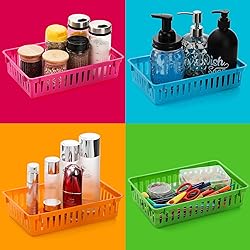These small plastic organizer baskets come in 4 kinds of bright colors, which can be vivid additions and decorations to your desktop. The smooth edges will not hurt your hands. Just grab this value pack of storage trays and say goodbye to clutter and mess! Package includes 16 packs of bright classroom storage baskets, sufficient quantity to meet your diverse organization needs. Each colorful basket measures approx. 10.2" L x 6.5" W x 2.4" H, perfect size for all those items that can easily get lost Our rainbow baskets trays are made of premium sturdy plastic, strong and tear-resistant, unbreakable and durable for long-lasting use. The ventilated hollow design allows you to easily see the contents of the baskets and keeps the food inside fresh DEAYOU classroom storage baskets bins are not only perfect for keeping papers, crayons, pencils, pens, scissors, rulers, erasers, students craft projects and other school supplies organized, but also ideal for storing baby clothes, bath accessories, kitchen items, toys, makeups, fruits, vegies, office supplies and small parts. Sky's the limit! Our modular shallow interlocking baskets can integrate together in all kinds of spaces such as closets, cubbies, shelves, drawers and desks. Perfect to be used in the kitchen, playroom, office, school to organize groceries. Also stackable for space-saving