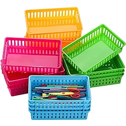 - DEAYOU 16 Pack Classroom Storage Baskets Bins, Small Plastic Organizer Baskets, 10.2"L x 6.5"W x 2.4"H Colorful Storage Trays, Crayon Pencil Containers, Modular Baskets Holders in 4 Assorted Colors for Paper, Desk, Shelf, Drawer, Closet, Playroom, Craft Supplies, Home, School, Office Specifications: Package includes: 16 packs of bright classroom storage baskets Material: Premium sturdy plastic Dimension: Each colorful basket measures approx. 10.2" length x 6.5" width x 2.4" height