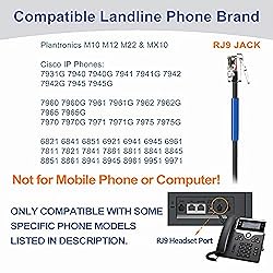 【NOT for Cell Phones and Computers】: ONLY COMPATIBLE with M10, M12, M22 & MX10 Amplifiers or Some Specific CISCO IP phone models: 6821, 6841, 6851, 6921, 6941, 6945, 6961, 7811, 7821, 7841, 7861, 7912, 7920, 7931G, 7940, 7940G, 7941, 7941G, 7942, 7942G, 7945, 7945G, 7960, 7960G, 7961, 7961G, 7962, 7962G, 7965, 7965G, 7970, 7970G, 7971, 7971G, 7975, 7975G, 8811, 8841, 8845, 8851, 8861, 8941, 8945, 8961, 8865, 8941, 8945, 8961, 9951, 9971. 1-YEAR WARRANTY & COMPATIBILITY NOTES: 45 DAYS MONEY BACK GUARANTEE & 1 YEAR WARRANTY. ONLY COMPATIBLE WITH SOME SPECIFIC PHONE MODELS LISTED IN DESCRIPTION (include but not limited). NOT compatible with Cisco SPA phone series. For Other Phones, Pls contact us for Compatibility Guide or Advice. CRYSTAL CLEAR CHAT: Wideband Sound RJ9 Call Center Phone Headset with microphone Compatible with Cisco landline phones enables excellent sound quality for natural listening experience, features Noise Canceling Microphone to reduce background noise, Acoustic Shock Protection Circuit to protect your hearing. MOST COMFORT HEADSET: Super lightweight wired Hands-free RJ9 Telephone Headset Compatible with Cisco Desk Phones with adjustable headband to fit all head sizes, high quality and soft leatherette ear cushion enhance all-day wearing comfort. Professional Mic Mute / Volume Control built in. ULTRA DURABLE: Precision design, quality plastics, unibody headband construction, superior quality microphone makes this office phone headset with RJ9 jack sturdier and more durable. Compete with Jabra heavy duty Telephone Headphones for Call Center, Office, Home, Telemarketing, Business, Phone sales, Insurance, School, Hospitals, Banks, IT Department, Customer Services, Consulting, Conference Calls.
