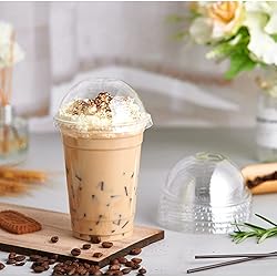 - LILYMICKY 100 SETS 12 OZ CLEAR PLASTIC CUPS WITH DOME LIDS: ✓We are committed to providing wide variety of disposable plastic products to facilitate your life and making you enjoy yourself. BEST CHOOSE FOR DRINKS: 1.Made of high quality flexible plastic, upgraded and thickened, designed with rolled edges for a smooth finish. 2.Durable and steady, cups with lids are leak tightness,perfect for on-the-go use.Impact resistant and crack resistant. Better quality and more reliable than others. 3.Crystal clear appearance can shows beautiful colors and the crystal bubbles of various drinks, such as coffee, smoothies, shakes, juice, bubble boba, lemonade, sodas yogurt, parfait and more. PACKAGE INCLUDE: 100 × 12 oz clear plastic cup 100 × dome lids with hole CAUTIONS : ☆ The PET plastic cups are only suitable for cold or room temperature drinks and food. ☆ Do not put hot coffee or other hot drinks in these 12 oz cold drinks cups or put them in the microwave or dishwasher.
