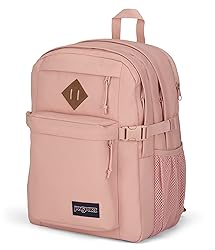 JanSport Main Campus FX Backpack - Travel or Work Bag w 15-Inch Laptop Pack with Leather Trim, Misty Rose