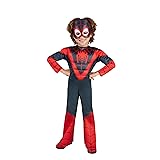 Release Their Inner Hero: Turn your toddler into a little superhero with the officially licensed Boy's Spidey and His Amazing Friends Miles Morales Costume. Comfortable Fit: Made from 100% polyester fabric, this costume features an elastic back waistband and hook-and-loop fastener strips for easy on and off, ensuring comfort during playtime. Muscular Appearance: The jumpsuit includes soft-sculpted fiberfill padding in the chest and shoulders, giving your toddler the iconic muscular look of Miles Morales. Complete the Look: Attached foam boot covers with elastic bands under the foot provide a snug fit, and the all-over printed graphics capture the essence of the beloved character. Ready for Action: The costume includes a foam-backed fabric mask with an elastic band, securely staying in place as your little one swings into superhero adventures. Officially Licensed Design: With attention to detail and an officially licensed design, this costume is perfect for Halloween, costume parties, or everyday heroic play.