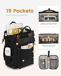 Fashion Backpack Purse for Women : The bottom of the laptop backpack is padded and the inside where the laptop and tablet sits has padding as well. Good padding to protect the laptop yet not too bulky. Wide foam padded and the padded carrying adjustable straps make it comfortable to carry. Plenty of Pockets & Storage : The laptop backpack for women has plenty of pockets for different types of items. The laptop bag can hold so much stuff and still keep it organized. The added small bag is a nice size to put a few small things or even a laptop charger. The added pouch bag can be used as electronics organizer, college essentials pouch bag, travel organizer or cosmetic organizer. Stylish & Practical Travel Backpack : The backpack has a front pocket with button fasteners and two side pockets. The side pockets are stretchy so you can be able to fit thicker water bottle or large cup. This convertible tote backpack with luggage strap / trolley sleeve can liberate your shoulders. Wide Open Laptop Backpack : This womens laptop backpack has a double zipper closure and the handles also have a snap button for added security. The large wide opening design at the top of the backpack makes it incredibly convenient and easy access items. The zipper glides smoothly. With a hidden anti theft pocket on the back protect your valuable items from thieves. Waterproof Work Backpack : Size 17"H x 13"L x 5"W. Electronics Organizer Case Size: 5”L x 5”H x 2”W. The laptop bag backpack mades with water-resistant polyester fabric, is perfect for working for teacher, doctor, nurse, office commuter. And this back pack comes with a dust bag for storage. Perfect Gifts Ideas : This computer backpack with laptop compartment is great for work, travel essentials, commuting, college, hospital, business trip, getaway, ect. Practical gifts for the people you care about. It’s the best choice as gifts for women or men on Birthday, Anniversary, and any other festivals.