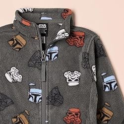 RELAXED FIT: Relaxed, comfortable fit through the body POLAR FLEECE: Double-sided knit fabric with a brushed finish and subtle texture, this soft and cozy midweight fleece keeps you warm and insulated while withstanding everyday wear. MODERN FLEECE ZIP UP: This full-zip mock-neck long-sleeve jacket is a wardrobe staple for an easy, casual look and extra layer of warmth. Perfect on its own for spring or fall or under a puffer for colder winter months. DETAILS: Full-zippered closure at front. Elastic binding at sleeve cuff and hem. Front on-seam pockets. OFFICIAL LICENSED PRODUCT: Amazon Essentials offers one-of-a-kind products featuring your favorite characters to add wonder to your wardrobe! All products are officially licensed and designed in-house.