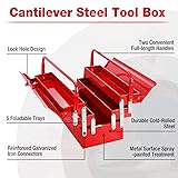 WORKPRO Metal Tool Box, 18-inch Cantilever Folding Red Storage Box, 3-Layer 5-Tray Multi-Function Tool Organizer, Red