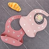 100% Food Grade Silicone Imported 3D FOOD CATCHER POCKET DESIGN: Our silicone bib is waterproof and has a large 3D pocket, it is always open to catch the falling food out of baby’s mouth. Don't worry the food will stain clothes and spill on high chairs and floor 4 ADJUSTABLE SIZE & EASY TO USE: Four neck size to facilitate the use of different age groups of infants and young children. Tie around the neck to prevent from pulling off easily and stay securely on toddlers. The silicone baby bibs with snaps to be as easy to use as possible;Just use the snap buttons to adjust and fit the bibs soft collar around your little one's neck HEALTH MATERIALS & WATERPROOF: Made from food-grade silicone, soft and lightweight, will last longer than other materials bibs for maximum durability; So your baby can use it over and over again! EASY TO WASH & DRYING : The surface is smooth, non-staining and does not absorb water. So they can be rinsed directly with water, just wipe with a small amount of soap, or put them in the dishwasher. Ready for immediate use after drying with a towel, saves your precious time. PRESENT & OFFERS: Our silicone bib sets are the perfect baby shower and are sure to be a favorite of any new parent; If you have any question about our silicone baby bibs or dissatisfaction with our bibs, we will gladly help you solve it