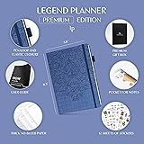 PREMIUM PLANNER FOR THE ULTIMATE PLANNING EXPERIENCE - Legend Planner Premium comes with an elegant gift box, 12 sheets of planning stickers, and a detailed user guide to ensure you get the most out of using it. MANAGE YOUR TIME, TO-DO'S & FINANCES ALL YEAR ROUND – Each week includes a Monday-to-Sunday layout, a habit tracker, and to-do lists. Each month features a spacious calendar, a budgeting section, and an expense tracker to stay on top of everything. FOCUS ON YOUR GOALS & FIND THE BEST WAY TO REACH THEM - This life planner encourages you to set big goals, break them into action steps, and include these in your agenda, so you can consistently work on your life goals and hit new milestones weekly. UNDATED PAGES, A5 FORMAT & LAY-FLAT BINDING - This time management planner lasts 12 months and has undated layouts; measures 5.8 by 8.3 inches; and has an eco-leather hardcover, thick 120gsm paper, pen loop, elastic, 3 bookmarks, and pocket for notes. 60-DAY MONEY-BACK GUARANTEE - We will exchange or refund your undated planner weekly and monthly planner if you aren’t satisfied with your notebook and planner for any reason. Reach out to us via message to refund your professional planner undated.