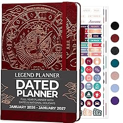 CREATE THE LIFE YOU'VE ALWAYS WANTED – This dated planner for 2026 will help you build a plan for your future, define your global life goals, and incorporate them into your agenda to work on them every single day. IMPROVE YOUR WORK-LIFE BALANCE – Learn to prioritize and manage your time effectively with monthly and weekly planning pages. Become your best self by setting and achieving goals in all areas of your life, not just school and work. PREMIUM QUALITY MATERIALS, STICKERS & OTHER EXTRAS – This goal planner comes in A5 size (5.8x 8.3 inches). The 2026-2027 weekly planner has a vegan leather hardcover, an elastic band, a pen holder, thick 120gsm paper, stickers, and a user guide. LASTS 13 MONTHS (JAN 2026-JAN 2027) – This weekly planner for 2026-2027 has convenient weekly and monthly layouts and covers 13 months of planning, from January 2026 till January 2027. 60-DAY MONEY-BACK GUARANTEE: We will exchange or refund your goal-setting planner 2026 if you aren’t satisfied with your work planner for 2026-2027 for any reason. Reach out to us via message to refund this adhd planner for adults for 2026.
