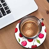Pznen Cherry Berries Coasters for Drinks Office Coffee Table Healthy Fresh Fruit Food Glossy Leaf Organic Ripe Sweet Graphic Living Room Decor Set of 2 for Cold Drinks Wine Mugs and Cups 4 Inch