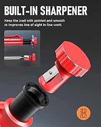 Nicpro Carpenter Pencil with Sharpener, Mechanical Pencils Set with 26 Refills, Deep Hole Marker for Construction, Heavy Duty Woodworking Tools for Architect (Black, Red) - With Case