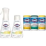 Clorox Cleaning Bundle Disinfecting Mist Lemon and Orange Blossom Scent (1 Spray Bottle & 1 Refill, 16 Fl Oz Each) Disinfecting Wipes (3-Pack, 75ct Each)