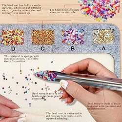 ┃JEWELRY KIT┃: Includes a bead mat and a bead scoop.The bead mat is made of sponge, which is light, soft and easy to carry; the bead scoop is made of stainless steel,it can be used for a long time, rust and corrosion resistant, making tedious work a breeze. ┃THE HOBBYWORKER BEAD MAT┃: The difference between this bead mat and other bead mat is that it is overlocked on four sides; when the beads are poured on it, they will not roll off the work area, and the stability is good, and it is easy to pick up the beads. And it has six separate grids ABCDEF, which can put beads of different colors or different sizes, so that the beads are in order and will not be mixed together, which is convenient for making jewelry. ┃SIZE┃: Bead mat size: 11.4L×8W×0.2H inches (29×20.3×0.6cm); Bead scoop size: 6L×0.6W (15.3×1.5cm). ┃WARM TIPS┃: Due to its production process, some of our bead pads will have a glue smell, but it will not affect your health. Please don't worry, you can put it in the air vent to dry for a while. We listen to our customers and keep improving. If you have any questions, please contact us, we will take responsibility and deal with it as soon as possible. ┃IDEAL FOR┃: This kit is perfect for DIY bracelets, necklaces, belts, bangles, earrings and other jewelry, great for beginners and adults.