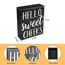 Pigort Hello Sweet Cheeks Sign - Bathroom Decor Modern Farmhouse Home Accent - Rustic Black Wood Shelf Plaque Box Sign for Women, Family, Friend 5X6X1.8 INCH