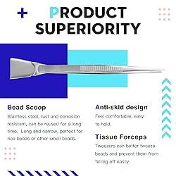 BEAD SCOOP: Stainless steel, rust and corrosion resistant, can be reused for a long time. Long and narrow, perfect for rice beads or other small beads; 6.45 inches long, easy to hold.Tweezer with Scroop can help to take small bead. PRODUCT SIZE: L: 14×11 inches (35.5*28cm). Have a centimeter scale, which is very convenient.Large has 24 cells 1.3×0.8 inches (3.3*2cm). GREAT FOR: Great for beginners, adults and teens to use for beading work to complete DIY making of necklaces, bracelets, earrings, or other jewelry crafting projects; can also be used as a workbench to restore jewelry. FUN DESIGN: The large size is 13 inches (33.5cm); it is very suitable for making necklaces or bracelets, with its own scale, which is an effective and convenient choice for all length required. APPLICATION: Prepare materials, accessories, beads, etc. needed in advance for jewelry crafting projects.