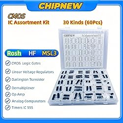 Comprehensive IC CHIP Collection: Our all-inclusive Electronic Components Kit, tailor-made for engineers, hobbyists, and beginners, covers 17 types of CMOS Logic Gates (74HCXX), 5 types of CD40XX, 5 types of LMXXX, 555 Timer, ULN2003/2803, and more! All conveniently housed in DIP Packages for effortless breadboard and PCB compatibility Ultimate Component Organizer: Keep your ICs safe and secure with our individually detachable organizer featuring built-in cushioning sponges. color randomly assigned as black or white, with identical performance.Our upgraded aluminium foil pouch vacuum-sealed outer packaging and built-in environmentally friendly industrial desiccant can effectively avoid moisture, static electricity and oxidation, providing maximum protection for your components. Effortless Identification: Our organizer box is labeled with the pin configuration and function of each IC – saving precious time and ensuring seamless identification during usage. We offer a wide range of tools to meet your needs for different projects including: ESD gloves, ESD tweezers, IC grabbers and IC pliers. Product List:74HC00 x2, 74HC02 x2, 74HC04 x2 ,74HC10 x2,74HC14 x2, 74HC74 x2, 74HC125 x2, 74HC138 x2, 74HC157 x2, 74HC164 x2, 74HC165 x2, 74Hc244 x2, 74HC245 x2, 74HC374 x2, 74HC574 x2, 74HC595 x2, 74HC4052 x2; CD4020 x2, CD4052 x2, CD4053 x2, CD4093 x2, CD4094 x2; LM317 x2, LM324 x2, LM358 x2,LM386 x2, LM393 x2; NE555 x2, ULN2003 x2, ULN2803 x2