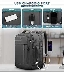 😍【Friendly Customer Service】We provides Lifetime worry-free after-sales service of this travel laptop backpack. If you have any problem about our carry on backpack, please do not hesitate to contact us, we will do our best to resolve it. (THIS ITEM IS NOT INTENDED FOR USE BY PEOPLE 12 AND UNDER.) 😍【Reduce Pressure】Normal Size: 19.6 * 12.9 * 5.9 inch; Expanded Size: 19.6 * 12.9 * 9 inch.The travel laptop backpack for men women equipped with adjustable chest straps, air-mesh ventilated back panel, can effectively relieve the pressure on the shoulder and neck.The backpack travel has a thickened sponge handles and shoulder straps provide you with more comfort when you are carrying and gripping the travel laptop backpack. 😍【Expandable & Large Capacity】This large travel laptop backpack is designed to be expandable, backpack for travel giving you a large capacity pack up to 50L, unzipping to get larger storage space. The carry on backpack for men women fits overhead and under seat while on state of standard carry on size, ideal for business or weekend travel, and easily carried on most flights. 😍【Practical】: The large travel laptop backpack can be freely unfolded 90-180 degrees, allowing you to quickly pass through airport security and keep things tidy. The luggage strap on back allows the men carry on backpack for travel to securely slip over the handle of any rolling luggage for hands-free transport, easier carrying. A perfect travel gifts for men women. 😍【USB Charging Port & Headphone Hole】Carry on backpack built-in USB Charging Port and headphone outside hole design. This travel laptop backpack is convenient to charge your phone(Note: POWER BANK is not included). Headphone jack provide a hole to enjoy the music while walking.