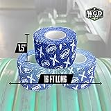WOD Recovery Hook Grip Weightlifting Tape - Sweatproof & Chalk-Resistant, Adhesive Wrap for Thumb, Fingers, & Hands - Black/Blue/White, 1.5 Inches x 16 Feet