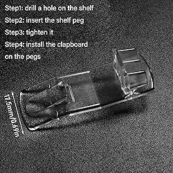 The curved transparent longboard support has strong bearing capacity and can be installed on furniture such as wardrobes, cabinets, shoe cabinets, lockers, desk cabinets, etc. It is stable and not easy to fall off. It provides excellent bearing capacity for furniture and is convenient for daily use. Fits 25/32inch Shelves -- Our Clear Plastic Shelf Brackets fit 1/4inch (6.4mm) diameter holes and 25/32inch (20mm) shelves. Thick material: Made of PC material, the surface is smooth and transparent, not easy to wear, not easy to break, long service life, and has a stronger bearing capacity. EASY INSTALLATION: Very easy to install manually without any screws, the frosted design has stronger grip and better fastening. Package Contents: 20PCS Shelf Holders. Dimensions (LxWxH): 51x17.5x22mm/2x0.7x0.9in. Specifications: 6.4x20mm/0.25x0.8in.