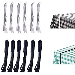 【Perfect to secure your tablecloth】--These tablecloth straps is applicable to secure your tablecloth,they can preventing it from being blown away by winds ! much suitable for both indoors and outdoor picnic tables, camping tables, patios etc 【Nice replacement for tablecloth clips】- These tablecloth straps can hold table cloths securely in place and prevent them flying off and gettig mess when eating 【Package include 】- there are totally 12 pieces of tablecloth bungee cords in this package,1 set of 2 pieces works for 1 table, they can work for 6 pieces tables, enough to meet your daily needs 【ELASTIC STRAP】 - each straps measures approx 3.28feet/100cm in length,long enough for you to adjust the length to fit tables of various sizes and thickness ! Quick and easy to install and remove 【Widely application 】 - these tablecloth strap are suitable for various occasions, like picnic, camping, wedding, parties, also they can be used on outdoor equipment like camping tables, beach chairs and pool side loungers. You can even use it to secure your storage boxes and trash bins