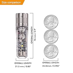 Powerful Main Light: the main light of the Aurora A28 rechargeable flashlight equips a 6500K cool white emitter that boosts up to 1000 lumens on the turbo mode (180 meters beam distance), it has five lighting modes from 0.5 lumens (moon) to 1000 lumens (turbo), and two emergency modes Strobe and SOS Practical Sidelights: there are three emitters on the side, an 5000K warm white light for night reading and camping, a 625nm red light for signal and night vision protection, and a 365nm black light for checking counterfeit etc Intuitive User Interface: the new Gen2 Aurora A28 features dual-switch that gives an user-friendly operating experience, Button 1 operates the main light and Button 2 operates the sidelights Lightweight yet Durable: The Aurora A28's case was made from polycarbonate makes it weighs only 1.77 oz in its small size which is 2.99 inches length by 0.85 inches diameter, it's also IP68 water resistant and 1.5 meters impact resistant Long Lasting: the Aurora A28 G2 USB C rechargeable everyday carry flashlight has a built-in 850mAh battery that supports a max runtime of 152 hours at Moonlight mode and can be fully charged in 1 hour Versitle Pocket Clip: in the package, a two-way magnetic pocket clip was included, you can clip it to your hat brim as a hat light or attach it on a metal surface at your working space for hands-free work