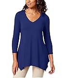 - A longer-length handkerchief hem graces the hips on this comfortable stretch top from JM Collection, making it a great basic and closet essential. Approximate model height is 5'10" and she is wearing a size small/4 Relaxed fit; hits at hip Due to generous sizing, we suggest sizing down for the perfect fit V-neckline Handkerchief hem 3/4-sleeves Same Great Fit. Same Great Brand. New, Fresh Label Rayon/spandex Machine washable Imported Web ID: 10488897