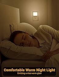 Cozy Soft Light: These plug into wall night lights provide 3000K soft light, 0.3W 40LM, not too bright or too dim, just the right amount of light to guide your way to the toilet at night, won't sting your eyes. Auto On/Off: The LED night light comes with a sensitive light sensor, it will automatically light on when surrounding is dim enough and light off when surrounding is bright enough. No more manual switching on and off. Small & Modern Design: With the compact size design, our bathroom night light won't take much space or block the second outlet for other device. The lightweight design of this nightlight makes it easy to carry around for travel. Wildly Use: These bright night lights are equipped with high quality plastic,a perfect choice for hallway, bathroom, kitchen, basement, stair, living room, etc. Low Energy Consumption: These night lights for adults consume only 0.3w, helps save electricity bills and provide enough light at the same time. Crafted from high-quality plastic, our LED night lights are designed for efficiency and consistent performance.