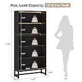 [High-quality with Amazing Load Capacity]: Made of thick particleboard and a heavy-duty powder-coated metal frame, this tall library bookshelf has a super large load capacity. Each shelf can load 88lbs. Totally 529lbs. The Shelves will NEVER sag under the weight of hardback books. [Great Size & Closed Back Shelves]: Overall size: 31.5” L * 11.81” W * 70.87” H. Because of the great depth, it is a good home office decor to put your large books, dictionaries, figures, and models. Unlike other fragile cardboard, our closed backboard is made of thick particleboard. [5-Tier Bookcases with LED Litinging]: Each tier of our tall bookshelf is equipped with an APP-controlled LED light strip, which can be adjusted to any color and brightness you like. Item weight: 65.4lbs. Heavy and strong. [Safe Anti-dumping Kit & Adjustable Feet Pads]: For further security, we provide an anti-dumping kit to enhance the stability of the big bookcase. And this shelving unit has 4 legs that can be adjusted if you need to compensate for uneven floors, rugs, etc. [Multifunctional Shelving Unit]: High quality, overall beautiful look, ample storage space, making this deep bookshelf can be placed in the living room, bedroom, library, study, den, reception area, classroom,etc. Ideal as a bookshelf bookcase, display shelf. [Easy Assembly and Customer Service]: All labeled pieces and tools are included, strictly following the directions, it is easy to assemble. If you are not satisfied with our products, you can directly contact us, we will provide you with 18 months free warranty and a professional customer service team.