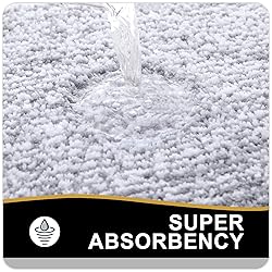 Microfiber [Heavy Density Microfiber] The bath mats are made up of 0.6-inch height premium soft and fluffy microfiber, where with the help of unique fiber locking technique, the fluff is thicker, making it well-suited for bathroom, vanity, vacation home, master bedroom, kids' bathroom, guest suite. [Ultra-Absorbent & Quick Dry] The soft microfiber fabric, will not let the water drip on to the floors, when you are stepping out of your bath, shower or getting ready by the sink. Further, there is moisture trapped inside the mat's deep pile, which allows the rug to dry quickly and cleanly. [Long-lasting and Sturdy] Unlike other brands that use PVC or hot glue, we've built ours with a resilient TP rubber backing. While PVC and hot glue weaken over time, our TP rubber mats are designed to withstand repeated washing and drying. WARNING: Water under the bathroom rug can cause it to slip. Keep bottom of the bath rug dry! [Easy Maintenance] OLANLY bathroom mats can be machine washed separately with cold water, mild detergent which has no chlorine or bleach and tumble dry on low speed or hang dry. Also, the color will not fade and will stay vibrant for many years even with after washing and drying many times. [Beautiful Décor & Multipurpose] The bath rugs have unique geometric design, to provide beautiful décor to nearly any space in your bathroom. The mats work perfectly in front of your single or double sink, shower, bathtub or anywhere you want to have support and warmth to your feet.