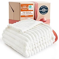 Bedsure GentleSoft White Throw Blanket for Couch - Soft Cozy Blankets for Women, Fluffy Fuzzy Fleece Throw for Girls, Birthday Gifts for Women Her, Room Home Boho Spring Decor, Off White, 50x60 Inches