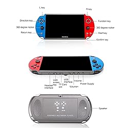 【Support Self-Downloading Games】This X12 Plus retro arcade game console supports arcade game formats: PS1, MAME, GBA, GBC, GB, NES, SFC, FC, SMD, MD. You can download games in relevant formats through your browser. If you can't open the game, please download it again or replace it with the developer's game pack! 【Multi-function Console】This X12 Plus is more than just a game console, it can also be connected to a TV for battle! Can be connected to PC via USB cable, support Win2000/Vista/XP/Win7/Win8/Win10. There are also functions such as music player, video player, camera, DV, audio recorder, photo viewer, e-book, stopwatch and calculator. 【7.1-inch Large Screen for Visual Feast】This X12 Plus game console has a 7.1-inch large screen, a TFT full-color 16 million color LCD screen, a 16:9 high-definition screen, and a resolution of 800*480. Double protection, do not hurt the eyes for a long time. With anti-scratch and anti-drop function, it brings exciting gaming experience and better eye protection. 【16G Large Memory for Massive Games】This X12 Plus Retro Game Console has built-in 16GB memory, you can download/store more of your favorite games, photos and videos through your computer, your happiness is defined by yourself. 【Long Standby Time】This Retro Game Console has a built-in 2500mAh high-capacity lithium battery, which supports up to 5 hours of gaming experience and 50 hours of music playback, long standby and battery life. Brings you a lot of joy and happiness during your travels or long journeys.