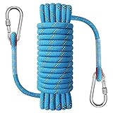 HIGH STRENGTH STATIC ROPE: 3/8 inch diameter x 32 feet length climbing rope with 15 kN (approximately 3,372 lbs) breaking strength for reliable performance in demanding applications REFLECTIVE ORANGE DESIGN: High-visibility reflective blue color ensures easy identification in low-light conditions and enhances safety during outdoor activities COMPLETE KIT WITH HOOK: Comes ready to use with an integrated hook attachment, eliminating the need for additional hardware and providing immediate functionality VERSATILE APPLICATIONS: Ideal for tree climbing, arborist work, rappelling, swing installation, roof safety, hoisting operations, rafting, and caving adventures DURABLE CONSTRUCTION: Static rope design minimizes stretch and provides stable, consistent support for technical climbing, rescue operations, and various outdoor recreational activities