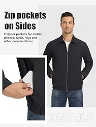 Material: full polyester, no lining sandwich, more suitable for the weather above 15 degrees. Zipper Design: side pockets and the front of the garment are closed with a zipper for convenience. 3 Pockets: 2 side pockets, 1 hidden pocket to provide ample storage space, side pocket can accommodate a normal size smartphone. Design: The collar of this jacket is in the shape of a shirt, and the overall lines of the body are simple, discarding superfluous lines and presenting a visually competent atmosphere. High Quality Production: Our jackets are made with advanced production techniques, reinforcing the shape, not easily deformed by multiple washing.Whether you want to wear it indoors or outdoors, for activities or for leisure, it is a piece that you can't go wrong with.
