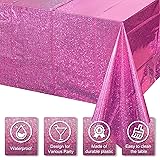 Package Includes: You will receive 4 pieces of pink shiny iridescence plastic tablecloth, each tablecloth measures approx 54 x 108 inches/ 137 x 274 cm, fits any rectangular tables up to 8 feet in length, suitable for party decoration. Shimmery Laser Tablecloth: The iridescence pink table cloths for parties feature a shiny holographic design, and it shows different color effects under different light, all very beautiful and shiny, it will be a highlight of your party and make the party atmosphere more joyful. Waterproof and Protect Table: The laser pink plastic table cover is made of plastic, sturdy, waterproof, oil-proof, not easy to break and fade, can be applied for a long time, is good for every party or event, and protect and decorate your table. Enjoy Party and Save Time: The pink iridescence tablecloth decoration is easy to clean, simply wipe to clean, or you can throw it directly after your party. The disposable table cover will save you time on cleaning, you can spend more time with family or friends and less time cleaning up. Multi-use Function and Occasions: Our pink iridescent laser party table decorations are the perfect choice for almost any occasion, such as boy girl kids birthday, graduation, baby shower, wedding party, happy new year and Christmas party, bachelorette party, 70 80 90’s time party and shining theme party, festival, and everyday use.