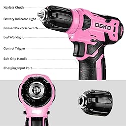 【Pink Cordless Drill with LED】The 8V Power Cordless Drill can be used for drilling in wood and plastic, and also for tightening/loosening screws.Press the switch to adjust the speed of the electric drill, and the maximum no-load speed of the mini drill is 800r/min. Equiped with built-in LED light, and the net weight of the hand drill is only 1.65 pounds, and it is easy to operate with one hand. 【Rechargeable Battery】This pink drill is supplied with a type-C 1.5A charging cable.You can connect it to a universal charger or USB output(5Vd.c)to charge the small drill.The battery indicator light is at the back of the drill, when the green battery indicator is stable without blinking,the battery is full. 【Be a Handy Women】This cordless drill combo kit are made of alloy steel, chrome plated to prevent corrosion, grip is anti-skid and comfortable. Light, durable, strong, safe and compact tools are perfectly suitable for longer life. Four precision screwdrivers in pink tools are for smaller fasteners on home appliances and electronics, two full size screwdrivers and bit driver handle when only a manual touch is needed, it is also a good tool sets for women to do general DIY. 【Multi-functional Tool Kit with Drill】This pink tool set contains the most practical and advanced tools for design, repair or maintenance. It is perfect for decoration, furniture assembly, drilling, cutting, gardening, office or daily home maintenance. This pink tool box are neatly stored in a sturdy case to keep them secure, clean, organized and easy to find. 【Package Included】1 *8V Cordless Drill; 1 *hex nut screwdriver; 2 *Screwdriver; 4 *precision Screwdriver; 6 *twisted drills; 8 *hex key; 1 *magneitc bits holder; 10 *50L bits; 18 *25I bits; 9 *1/4" sockets; 1 *Measure Tape Ruler; 50 *fasteners; 1 *claw hammer; 1 *adjustable wrench ; 10*Utility Knife Blade ; 1 *Utility knife; 1 *Long Nose Pilers; 1 * User Manual; 1 * 1 Year Warranty.