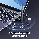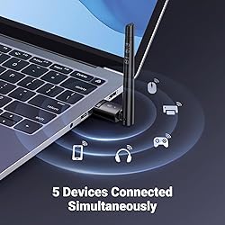Bluetooth 5.3 Adapter: Applies the latest Bluetooth 5.3+EDR technology, compatible with Bluetooth 5.2/4.2/4.2 LE/4.0/2.1+EDR, and supports Dual mode (BR/EDR+ Bluetooth Low Energy) to achieve low energy consumption and high speeddata transmission rate. Quick response and better anti-interference. Up to 5 Devices Sync Connected: You can fully use the USB Bluetooth Adapter to connect multiple devices simultaneously, Can work with 5 devices at the same time, such as Bluetooth speakers, keyboards, headsets, mice, Which means that you can listen to high-quality music while using the keyboard or other devices. What Can I do if the bluetooth adapter can not work?: Ensure there are no other Bluetooth devices installed on the computer. If there are, disable all existing Bluetooth devices in "Device Manager", then insert the adapter and try again. (Detailed information please read the user manual) Plug & Play: No need to install any drivers, just plug the USB wireless adapter into your computer, then you can use it directly. You can use the Bluetooth function at any time. Greatly improve your work efficiency and save your time. This bluetooth dongle for PC only supports Windows 11/10/8.1. NOTE: 1. It's not compatible with Mac OS, Linux, Car Stereo systems, XBOX or TV. 2. It can not be used directly on PS3, PS4, PS5, Switch, or Xbox Console; but it can be paired with Game Controllers. 2. It only can be paired with bluetooth devices, like bluetooth haedphone, bluetooth speakers, etc Note for Apple Users: This Bluetooth Adapter does not support Mac OS or iPhone.