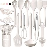 Kitchen Utensils Set, Umite Chef 22Pcs Silicone Cooking Utensils Set, Heat Resistant Silicone Kitchen Spatulas Set with Holder, White Cooking Gadgets Tools Set for Nonstick Cookware, Dishwasher Safe