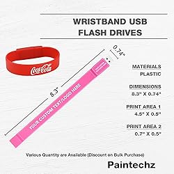 Paintechz Custom Wristband USB Flash Drives 100 Pack Bulk, Personalized Logo or Text - as Company Gifts and Promotional Giveaways - 2GB