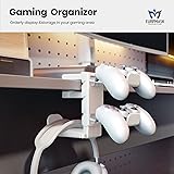 3-in-1 PC Gaming Headset&Controller Holder - EURPMASK Headphone Stand w/Adjustable Clamp&2 Controller Holder&Rotating Arm&Cable Organizer, Universal PC Gaming Accessory Controller Headset Stand-White