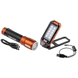 Klein Tools Rechargeable LED Flashlight with Worklight & 56403 LED Light, Rechargeable Flashlight/Worklight with Kickstand and Carabiner, Charges Small Electronics, for Work, Camping